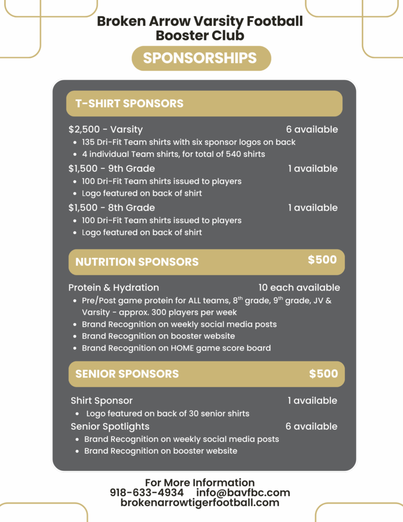 Shirt Sponsor-Logo featured on back of 30 senior shirts. 1 available